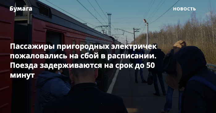 В пресс-службе Северо-Западной пригородной пассажирской компании «Бумаге» подтвердили сбой, но не уточнили, с чем он связан. В СЗППК также отметили, что некоторые поезда следуют с отставанием графика на время от 10 до 50 минут.