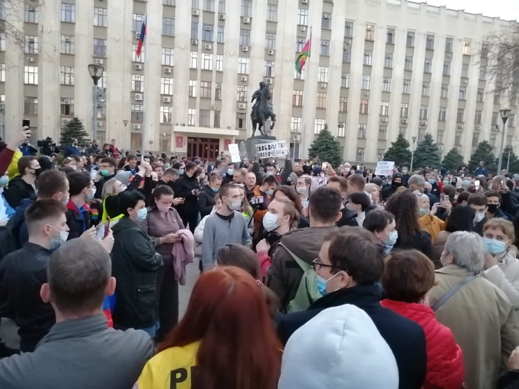 К 19 часам перед зданием администрации находились порядка двух сотен человек – в основном молодежь, некоторые пришли семьями с детьми. Позже пришли еще люди, так что количество митингующих превысило две тысячи.