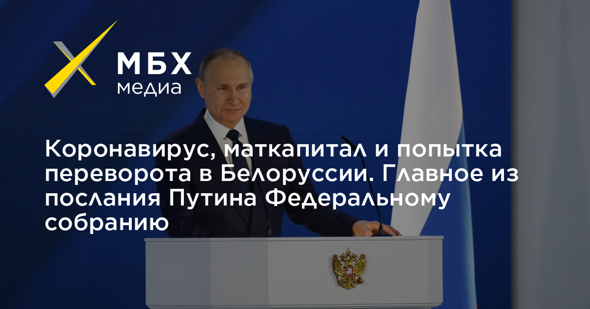 Коронавирус, маткапитал и попытка переворота в Белоруссии. Главное из послания Путина Федеральному собранию