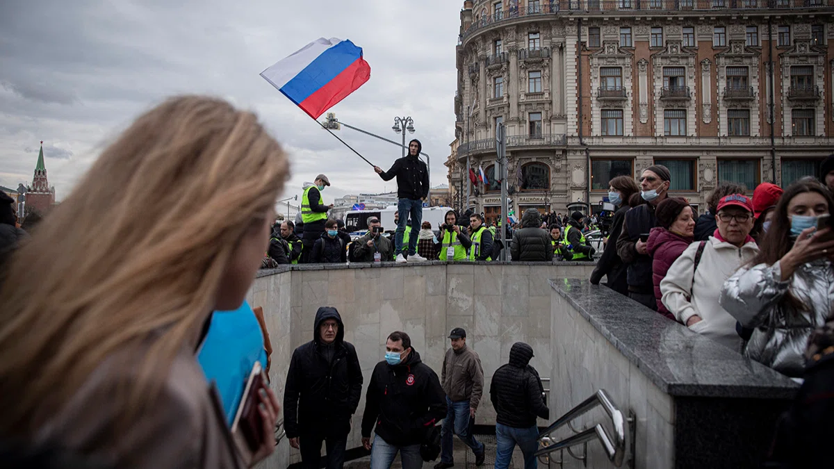Тем временем людей на Тверской и Моховой становится все больше. В толпе звучат лозунги «Леха, живи!», «Долой полицейское государство!», «Навальному — врача!». На митинг пришел оппозиционный политик, председатель Фонда Бориса Немцова за свободу Владимир Кара-Мурза — младший. Политика сразу обступили иностранные СМИ, которым он начал рассказывать о том, что «Россия — это не Путин».