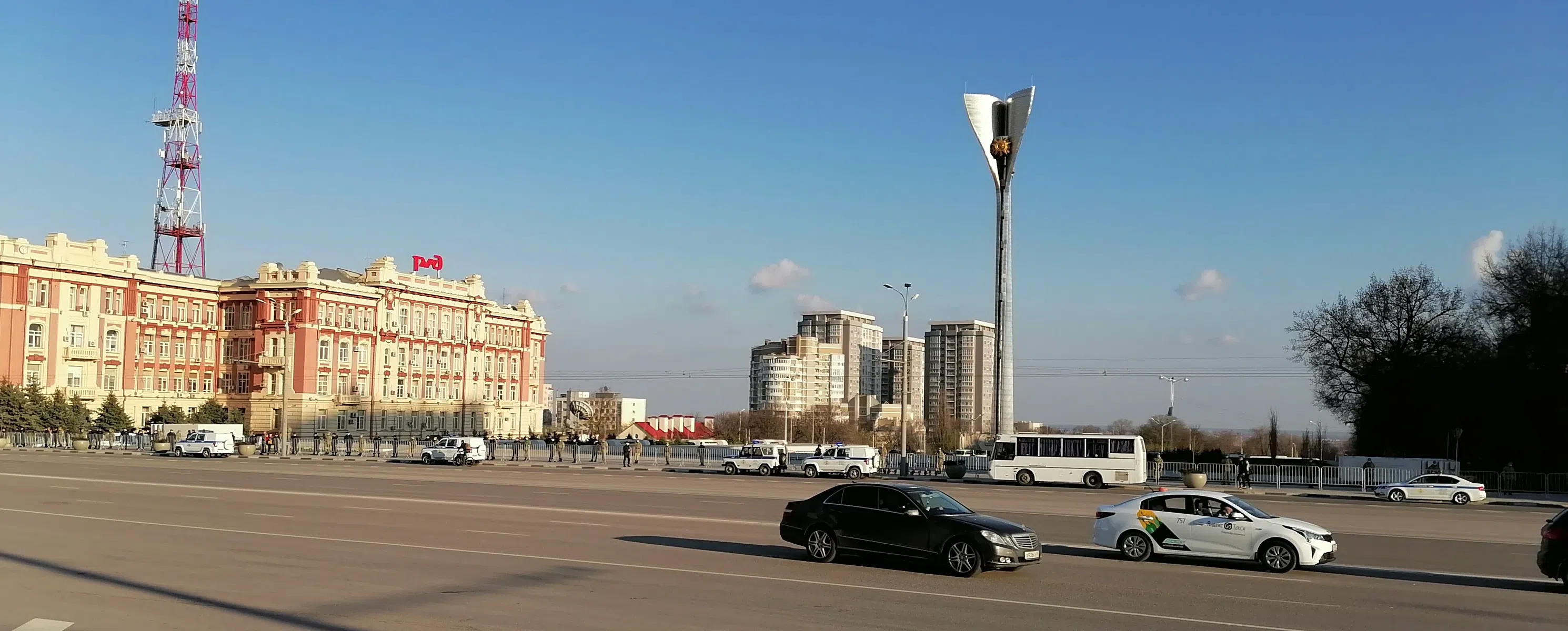 Сделать самую большую площадь Ростова местом проведения несогласованной акции с самого начала было задачей невыполнимой. «Театралка» одновременно является оживленной проезжей частью, с одной ее стороны расположен парк Революции с Фонтанной площадью, с другой — стела Славы с прилегающим фонтаном-амфитеатром. Обе эти территории к 16 часам 21 апреля были обнесены металлическими щитами, а по периметру выставлены сотрудники полиции и служащие Росгвардии. Площадь Советов перед зданием областного правительства оцепили в 14.00.