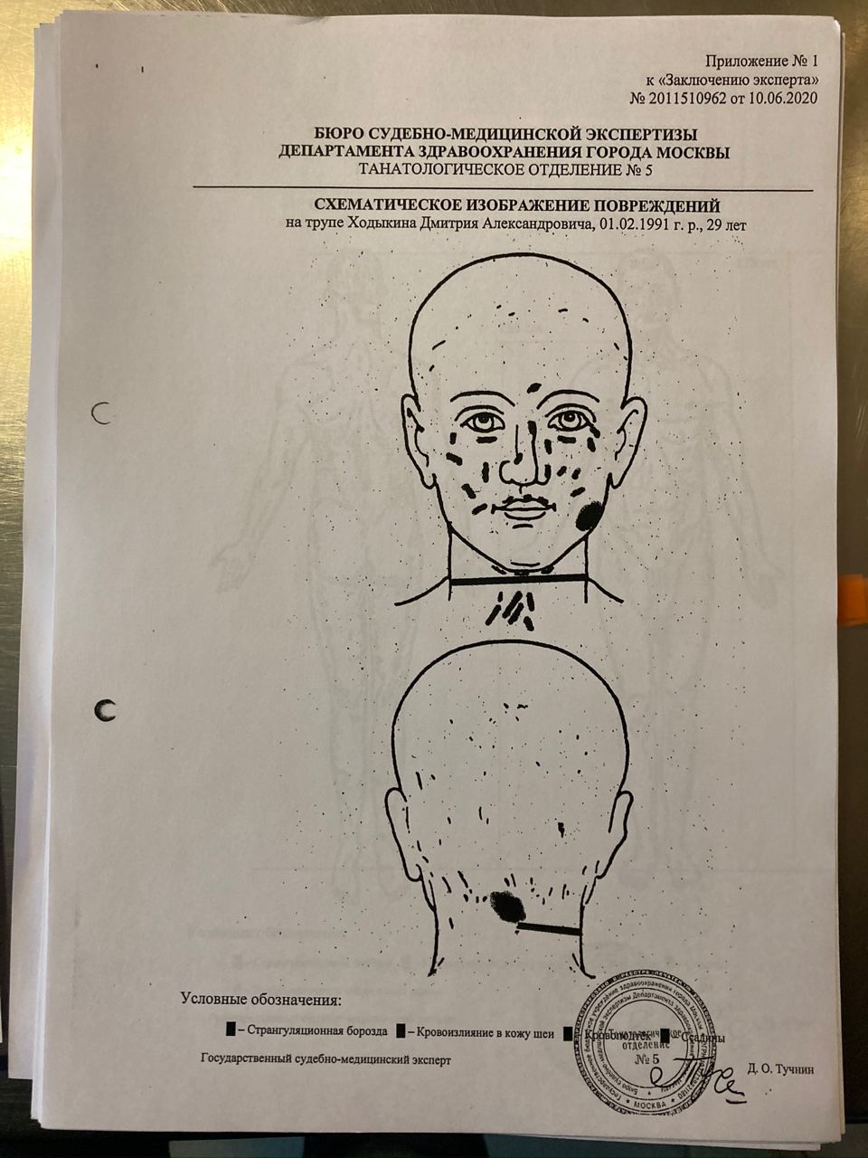 Только через четыре месяца после смерти Ходыкина, в конце октября 2020 года, следствие наконец назначило комиссионную судебно-медицинскую экспертизу и медико-криминалистическую экспертизу лоскута кожи с шеи. Адвокаты должны были ознакомиться с их результатами еще до конца 2020 года, но заключения им до сих пор не показали.