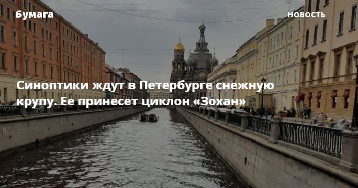 Днем в пятницу ожидаются кратковременные дожди, а также местами снежная крупа. Температура поднимется до +9 градусов, ветер умеренный. Возможны прояснения, но в целом погода облачная. Как поясняет синоптик центра «Фобос» Михаил Леус, погоду сегодня формирует циклон «Зохан» — Петербург оказался в его тыловой, холодной части.