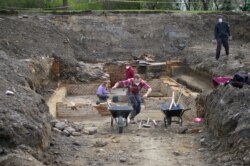 – Мы не можем пока точно определить, как долго трудовой лагерь функционировал с целью проживания "неблагонадежных" участников строительства. Активная фаза строительства происходила в 1951–53 годах, и в ней принимали участие в том числе квалифицированные рабочие. В частности, каменщики, которые обрабатывали гранит, считавшийся почти драгоценным. Нам известно, что в эти годы руководство стройки жалуется на недостаток спальных мест и их неприспособленность для жилья. Оно просит предоставить гостиницу в Праге и получает ее в свое распоряжение. Возможно, в 1953 году трудовой лагерь перестает выполнять свою изначальную функцию, однако известно, что в дальнейшем остаются открытыми как столовая, так и кухня. В 1954 году, когда происходят финальные работы, на месте лагеря начинают восстанавливать парковые ландшафты. В это время происходит демонтаж зданий. Причем это делают с большой основательностью. И это тоже типично для таких трудовых лагерей. Режим сам заметал следы преступления и делал это с особой щепетильностью. Так было и в данном случае. Сюда привезли огромное количество земли, которой засыпали не только территорию лагеря, но и пространство вокруг – вплоть до постамента памятника. Все тщательно засыпали землей, и память этого места таким образом стерлась, – говорит чешский археолог.