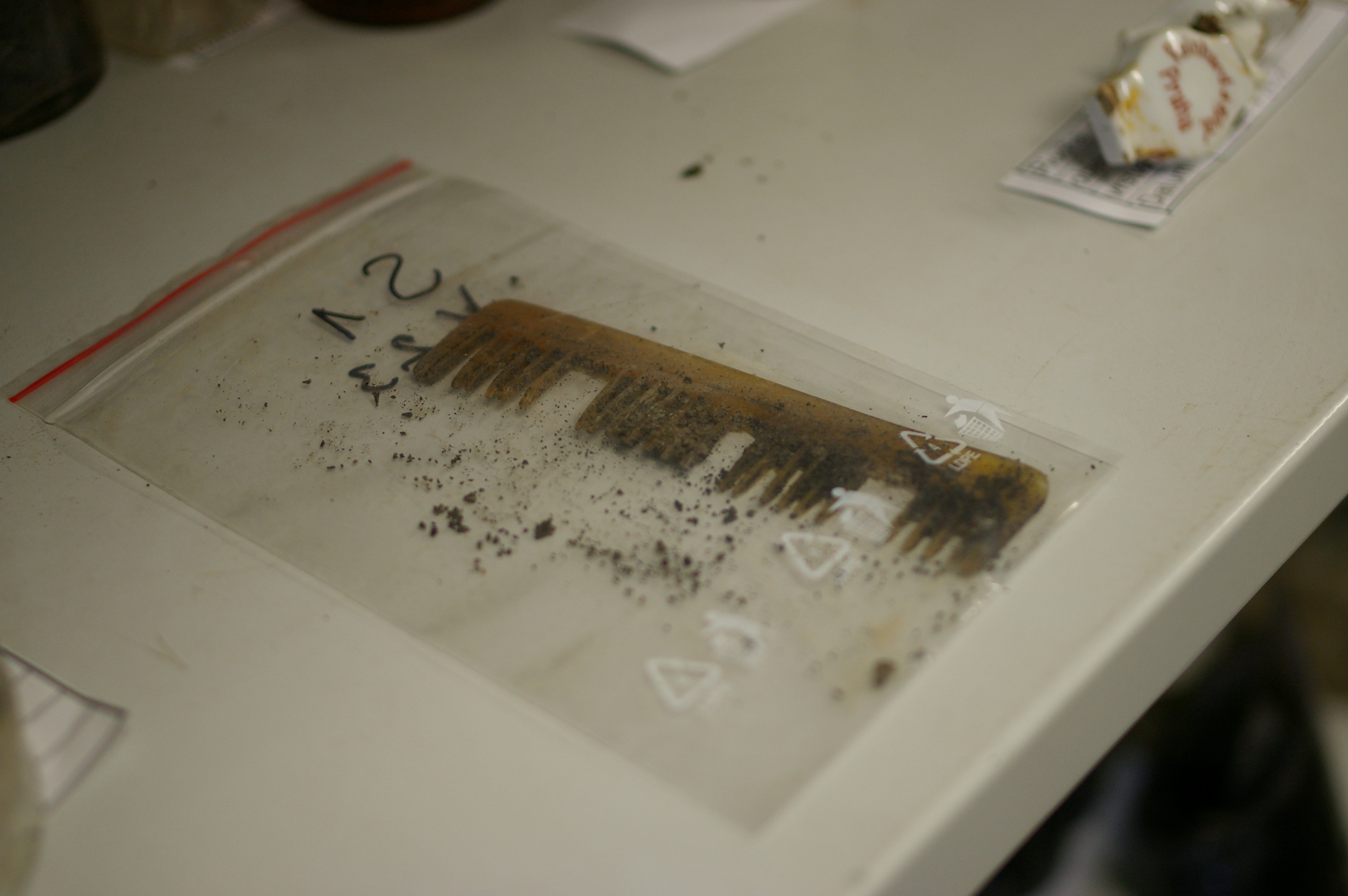 Из трех бараков сохранились основания только одного, поэтому тут и ведутся раскопки. Выяснилось, что пол был покрыт деревянными досками, и в щели между ними падали мелкие предметы и мусор. Благодаря этому археологам удалось обнаружить расческу и пуговицы: среди них есть и одна женская, а значит, среди участвовавших в строительстве заключенных были и женщины. Также обнаружены кости домашней птицы. Эти мелкие находки помогают понять, какой была жизнь в лагере.