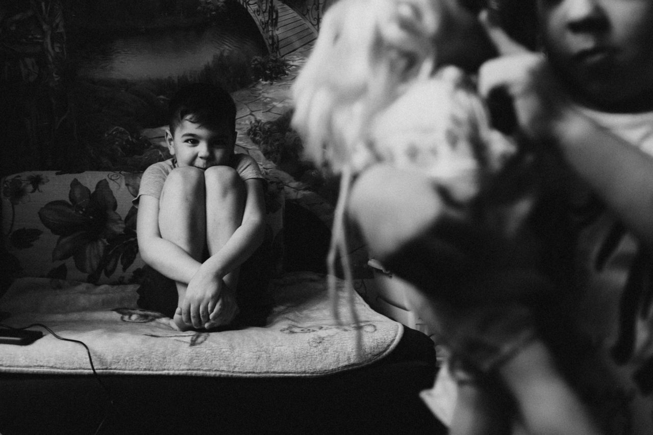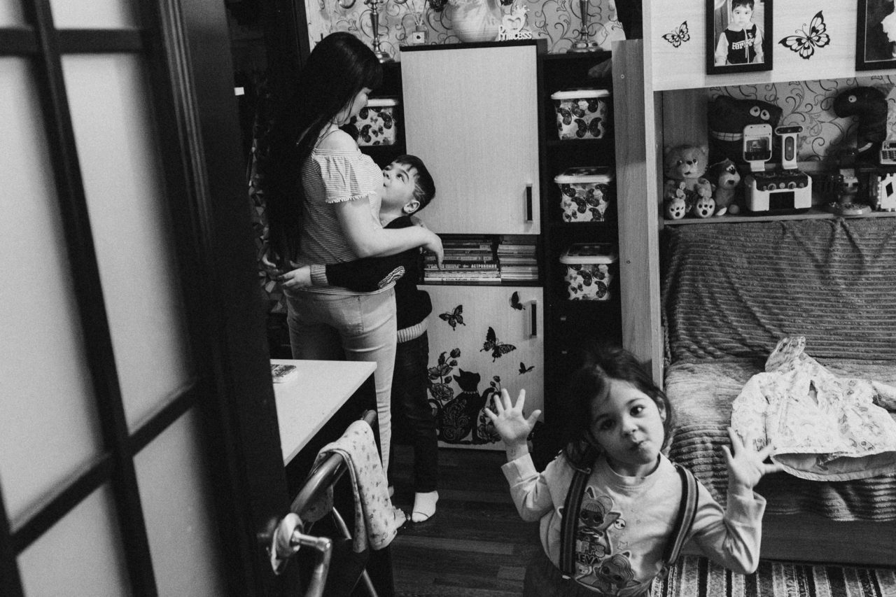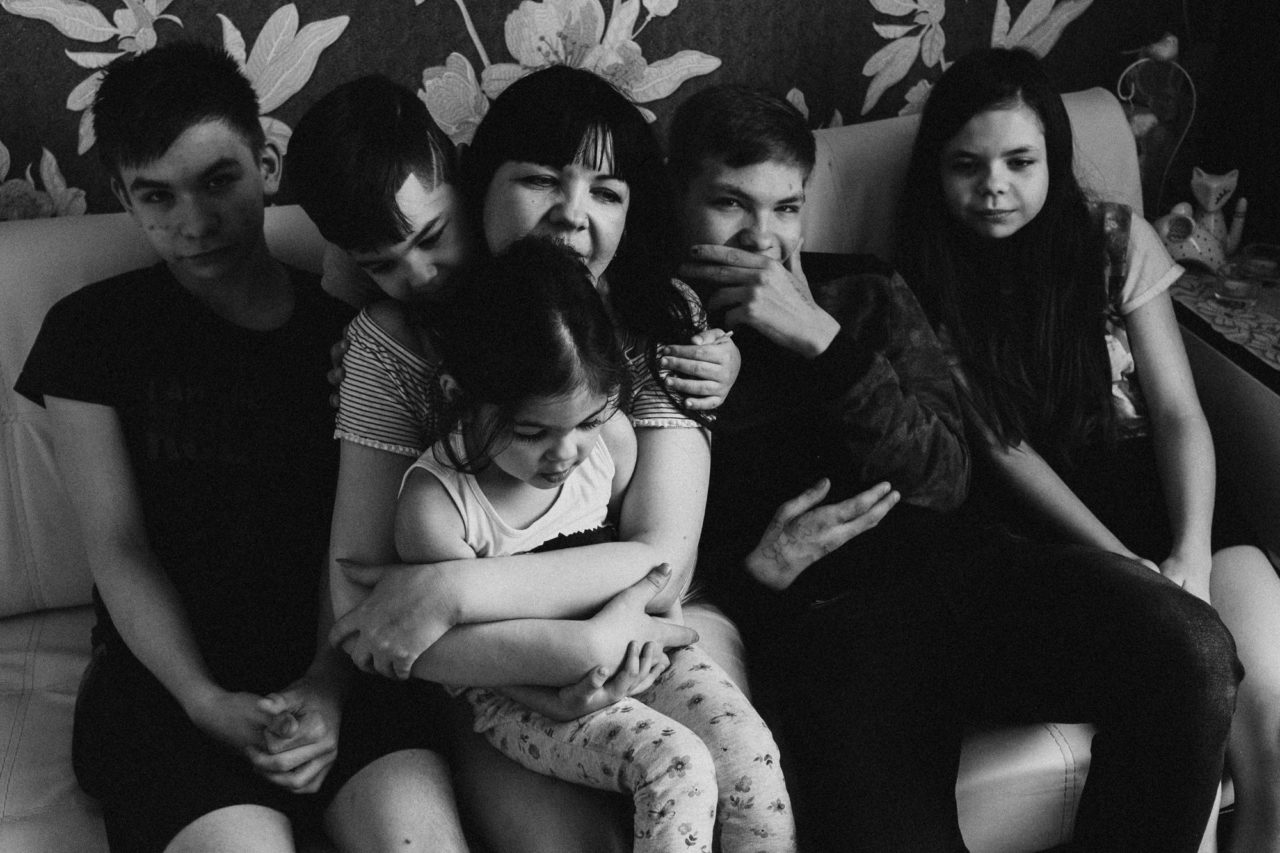 Светлана — мать-одиночка. В сорок два года у нее шестеро детей, пятеро из которых ютятся в этой маленькой комнате на окраине Москвы. «Друг у друга на головах живем. Я с младшей сплю на раскладном диване, остальные здесь», — говорит она, проносясь вихрем по комнате.