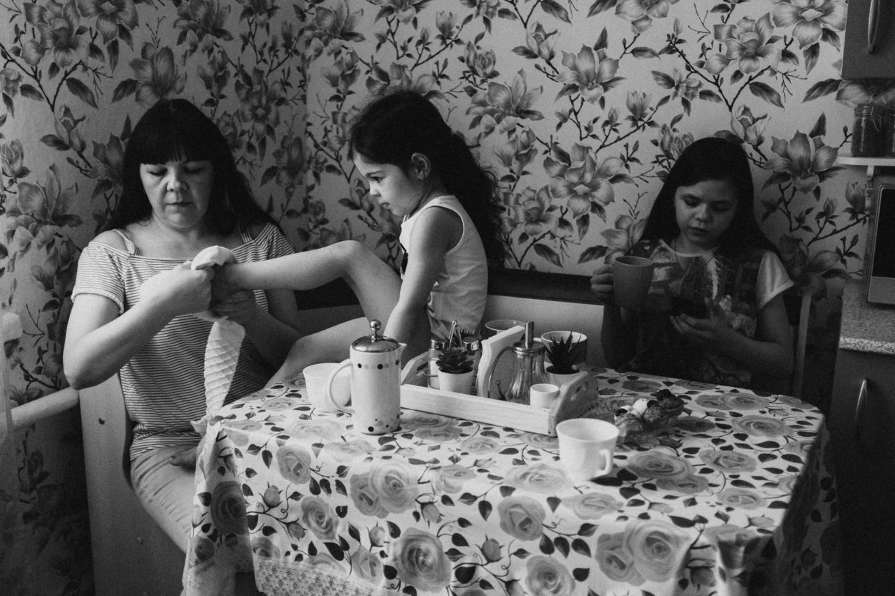 Светлана уходит на общую кухню, где никого нет, а значит, тихо. Она садится, облокачиваясь на спинку стула, а я пытаюсь понять, как у нее получается выживать, тратя на каждого члена семьи по восемь тысяч шестьсот рублей в месяц. На сумму вдвое меньше московского прожиточного минимума Светлане удается не только кормить детей, но и красиво одевать их, покупать им учебные пособия и баловать вкусными малиновыми пирогами.