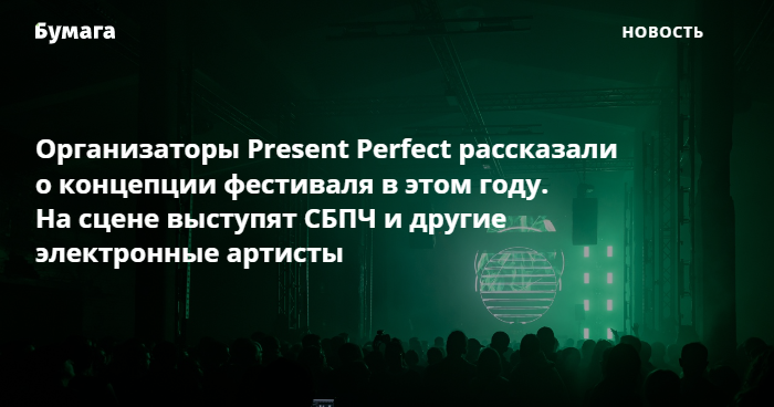 Организаторы Present Perfect рассказали, какой будет концепция фестиваля в этом году и каких артистов ждать на сцене.