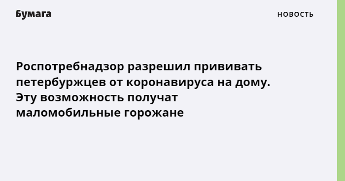 О планах прививать петербуржцев на дому в комздраве сообщили еще 15 апреля. Тогда предполагалось, что согласовать процедуру с Роспотребнадзором удастся в течение недели.
