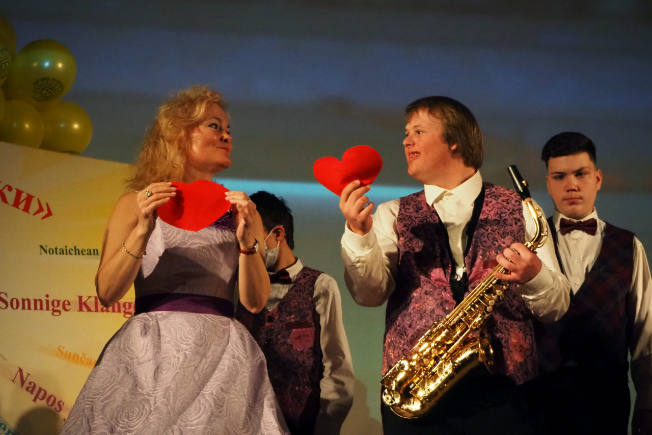 Кофе-брейк закончился, и все потянулись в зрительный зал на свои места. Кто-то с заднего ряда дотрагивается до моего плеча. Поворачиваюсь: молодой человек широко улыбается и протягивает мне руку. Так мы познакомились с Яном. Через пару минут он будет сосредоточенно играть на мелодике вместе с оркестром. С инструментами Ян познакомился во время учебы в коррекционной школе, но серьезное увлечение музыкой началось с «Солнечных ноток». Ян учится играть на саксофоне, мелодике и ударных. Больше всего ему нравится исполнять сольную композицию «Сулико» в национальном грузинском костюме.
