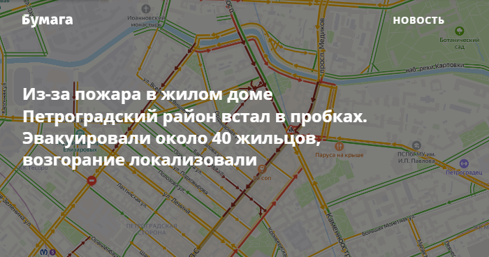 Из-за пожара в жилом доме Петроградский район встал в пробках