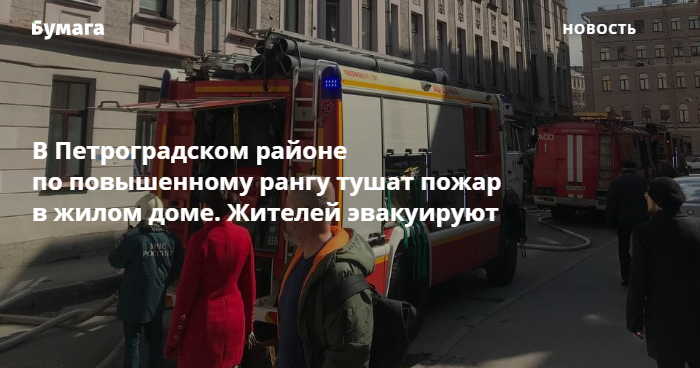 В Петроградском районе по повышенному рангу тушат пожар в жилом доме