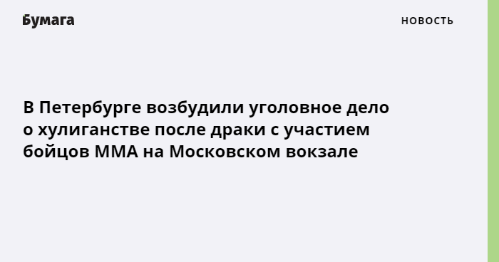 По данным «Фонтанки», дело возбуждено в отношении бойца ММА Никиты Солонина. 27 апреля 30-летний боец ММА Артем Тарасов рассказал, что его с 27-летним Солониным задержали после конфликта на Московском вокзале. По информации СМИ, потерпевший — вице-президент «АльфаСтрахования» Андрей Сорокин. Сам Сорокин эту информацию не подтверждал.
