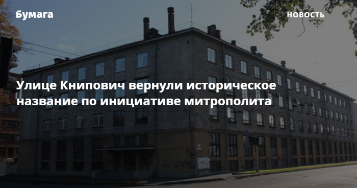 Решение вернуть улице историческое название приняла топонимическая комиссия, а инициатором обсуждения выступил митрополит Санкт-Петербургский и Ладожский Варсонофий. Живущим на улице Книпович людям не нужно менять документы из-за переименования, подчеркнули власти.
