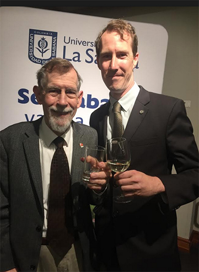 © Предоставлено Эндрю Маклюэном Эрик Маклюэн с сыном Эндрю. Снимок сделан после инаугурационной лекции Эрика в Университете Ла Сабана, Колумбия, 17 мая 2018 года, за день до его смерти Куда теперь двигаться?