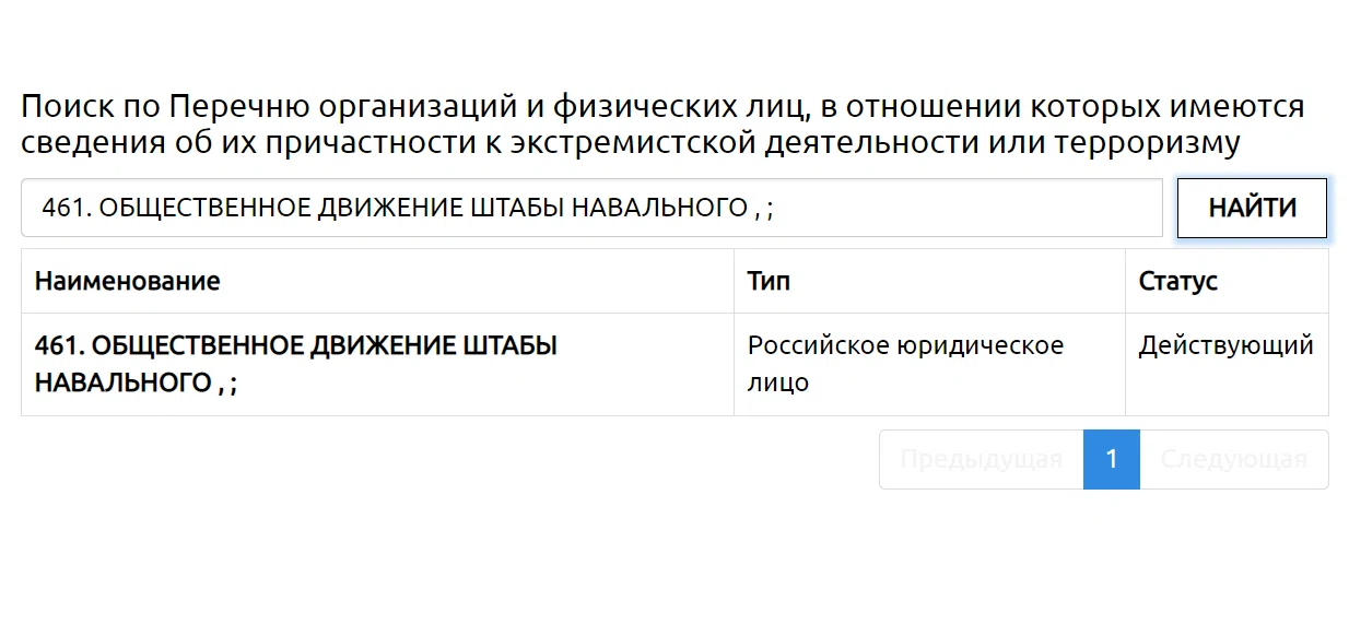 Росфинмониторинг включил общественное движение «штабы Навального»* в перечень организаций, причастных к терроризму и экстремизму. Список приводится на сайте ведомства.