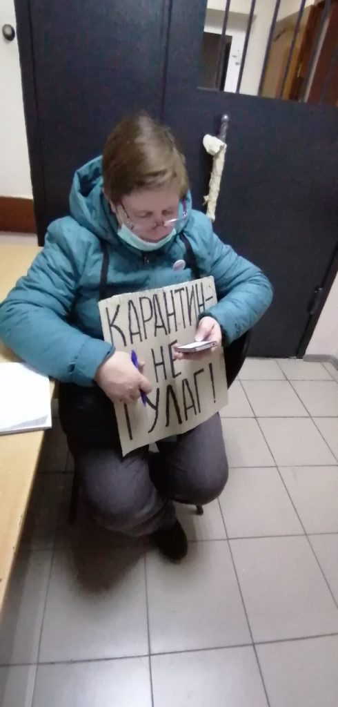 На заседание меня и моего защитника Надежду Низовкину не пустили. Ко мне подошла помощница судьи и сказала: «Если вы через три минуты к нам не присоединитесь, то заседание пройдет без вас». Я ответила: «Часть 8 статьи 20.2 подразумевает, что человек должен присутствовать с защитником. Я вас прошу подождать защитника». Они ждать не стали. Мы смогли попасть только на оглашение решения — штраф в 250 тысяч рублей. На следующий день по 19.3 меня оштрафовали еще на 500 рублей.