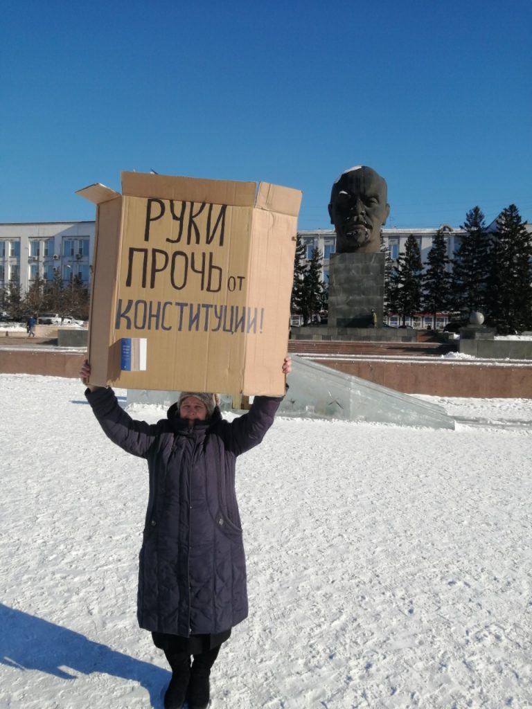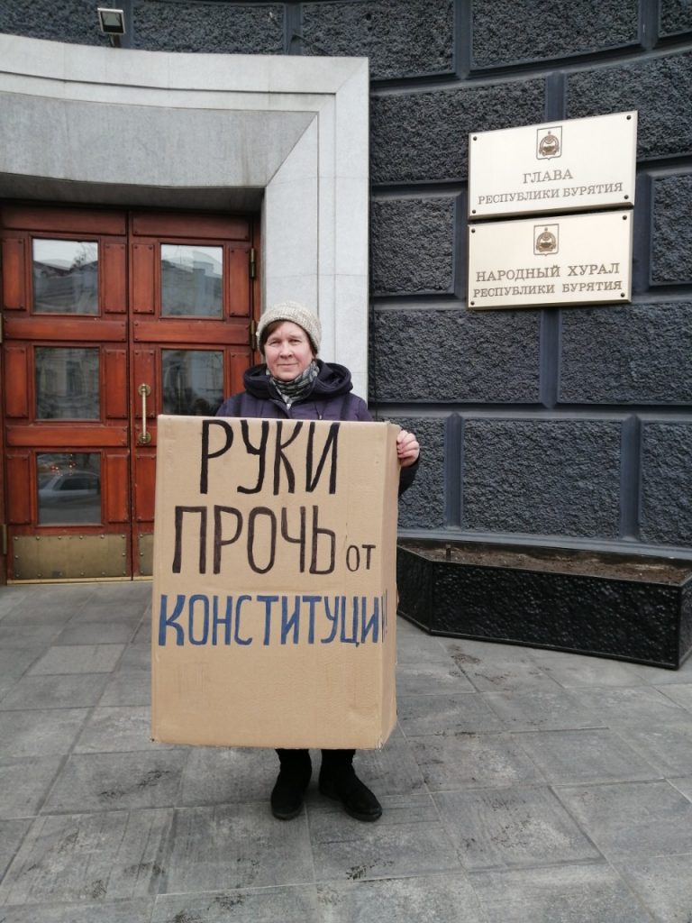 Меня забрали сразу, увезли в отдел полиции Железнодорожного района Улан-Удэ. Там на меня составили административный протокол по части 8 статьи 20.2 — повторное нарушение порядка проведения митинга, — поскольку у меня уже был штраф в 20 тысяч рублей за серию одиночных пикетов в память о Борисе Немцове год назад. Заодно 31 января мне влепили еще и 19.3 (неповиновение распоряжению сотрудника полиции. — Прим. «Холода») за буйное поведение в стенах отдела полиции: я вела там съемку, не соглашалась отдать телефон, испортила протокол.