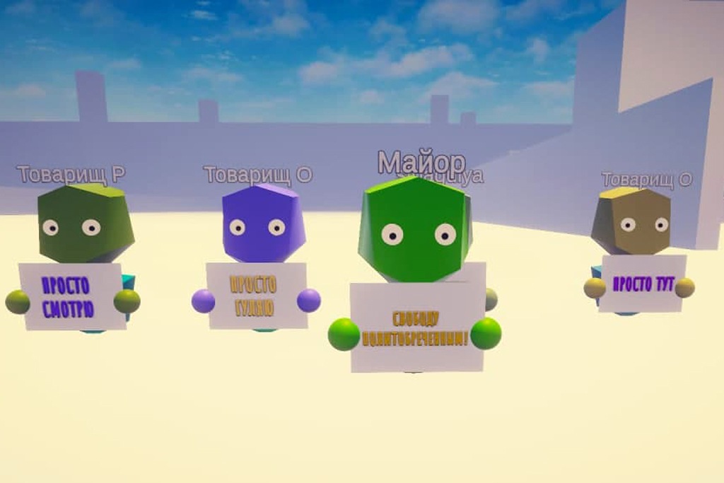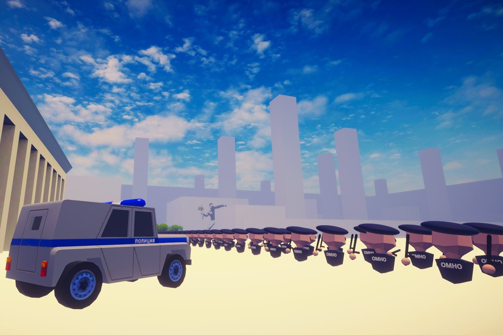 «Онлайнстрация — это виртуальный творческий митинг, в котором вы можете принять участие, создав собственного персонажа со своим плакатом с любым текстом, и посмотреть персонажей, созданных другими участниками! У нас всё как в жизни — митинг строго охраняется бойцами ОМНО, а некоторых онлайнстрантов уже пакуют в автозаки. Вы даже можете опробовать свои силы в противостоянии бойцам ОМНО или изучать виртуальное пространства, открывая все его секреты, — говорится в сообщении авторов. — Приложение обновляется в течение дня с ростом участников, поэтому, вполне возможно, что при следующем посещении вы обнаружите новые сюрпризы, мини-игры или анимации».