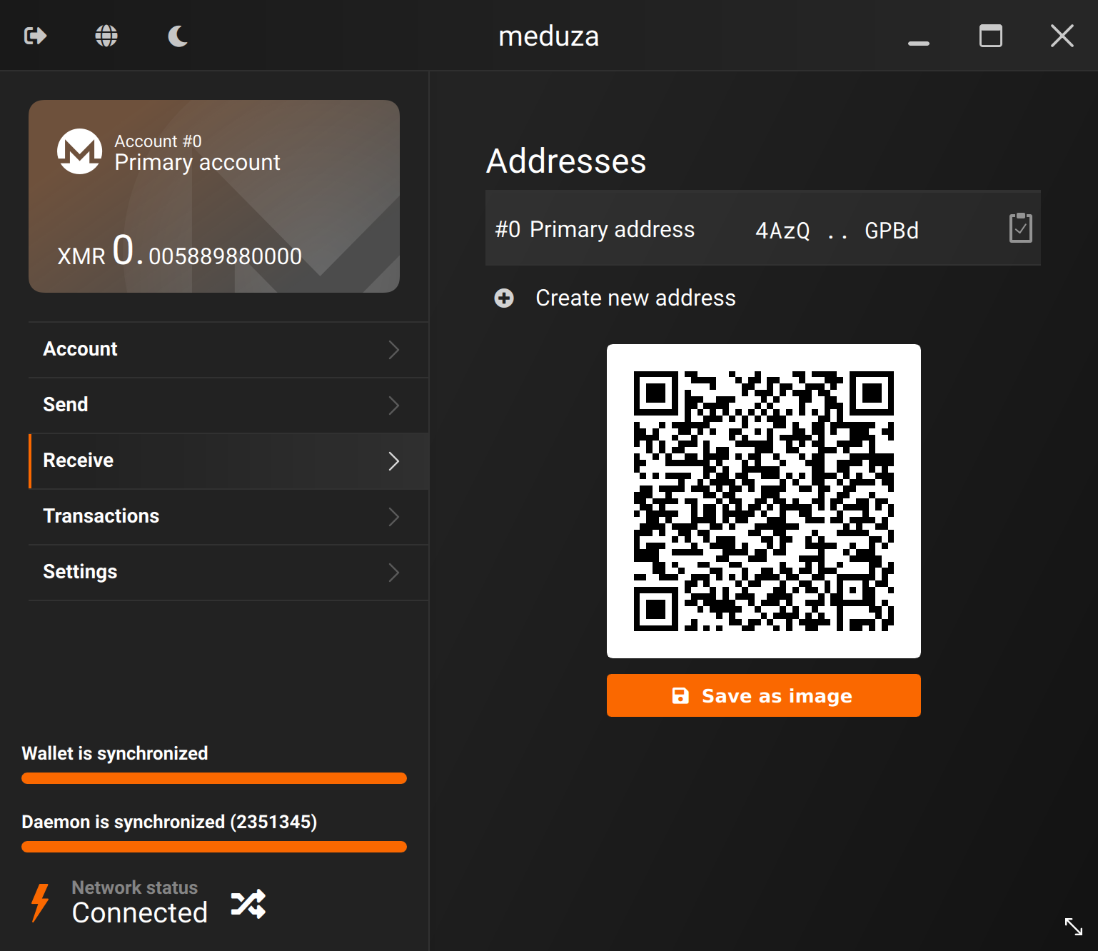Найдите адрес своего кошелька. Научитесь его копировать: можно отсканировать QR-код или нажать на иконку справа от адреса (#0 Primary address).