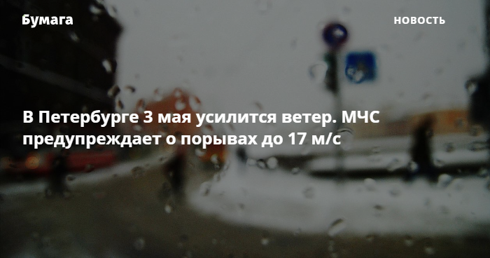 В Петербурге 3 мая усилится ветер. МЧС предупреждает о порывах до 17 м/с