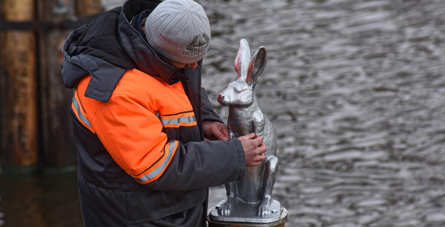 Работы с ледорезами планируют закончить в конце мая, но памятник зайцу уже удалось вернуть.