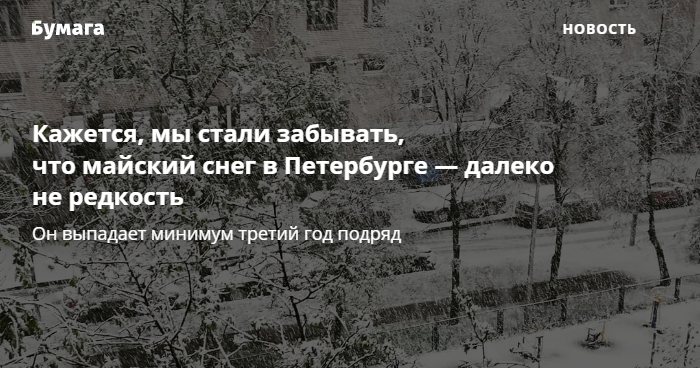 В Петербурге минимум третий год подряд выпадает снег в мае