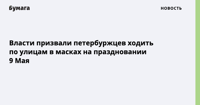 Власти призвали петербуржцев на праздновании 9 Мая ходить по улицам в масках
