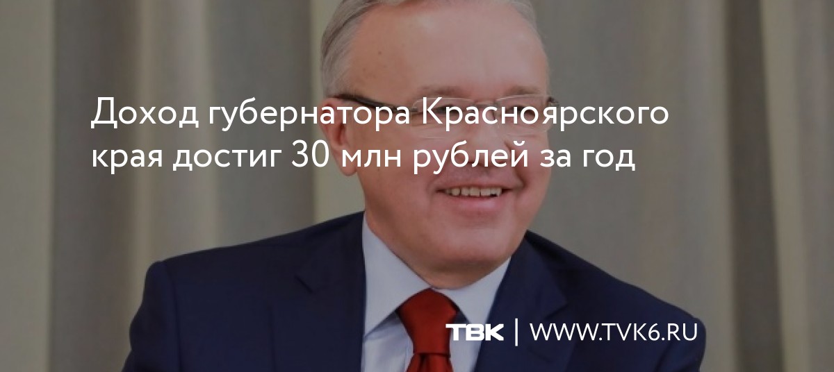 Доход губернатора Красноярского края достиг 30 млн рублей за год