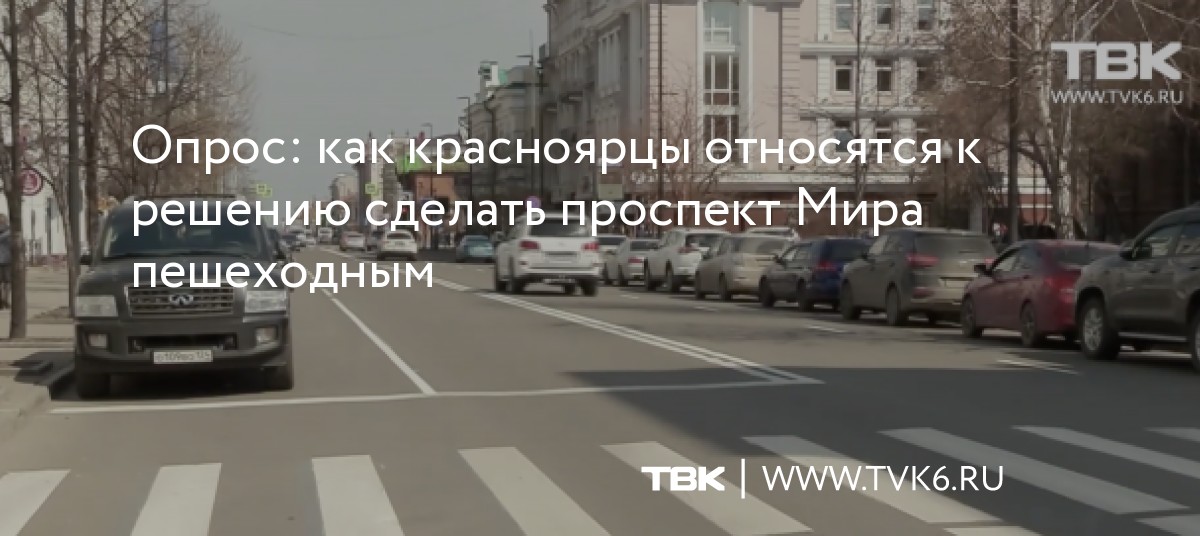 «ТВК Красноярск» спросили красноярцев – и пешеходов, и водителей, – что они думают о перекрытии проспекта Мира и как относятся к решению сделать главную улицу города пешеходной.