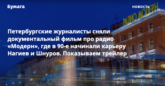 Петербургские журналисты сняли документальный фильм про радио «Модерн», где в 90-е начинали карьеру Нагиев и Шнуров