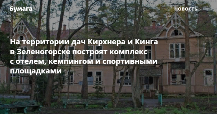 Комитет по инвестициям опубликовал проект концессионного соглашения о создании гостинично-досугового комплекса на территории дома купца Елисеева (дача Кирхнера) и дачи Кинга в Зеленогорске.