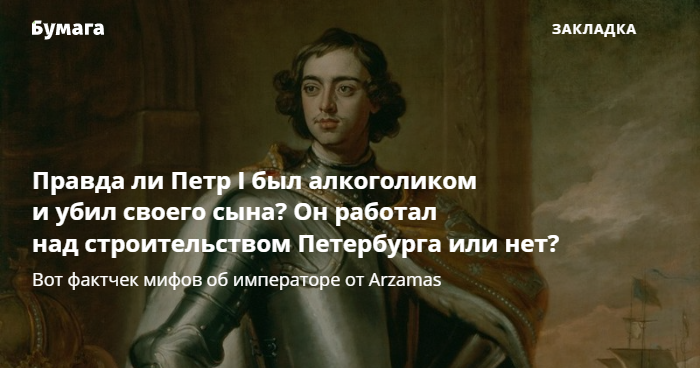 Правда ли Петр I был алкоголиком и убил своего сына? Он участвовал в строительстве Петербурга или нет? Вот фактчек мифов об императоре от Arzamas