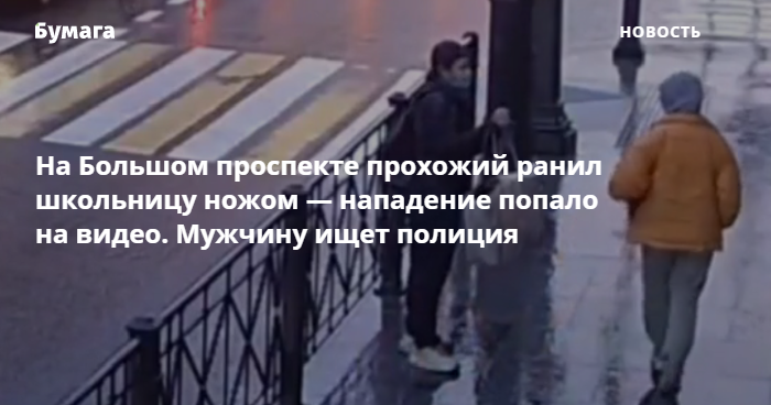 На Большом проспекте в Петербурге прохожий напал на школьницу, сообщили в ГУ МВД. @bazabazon опубликовали видео. pic.twitter.com/QGVK9uUstZ