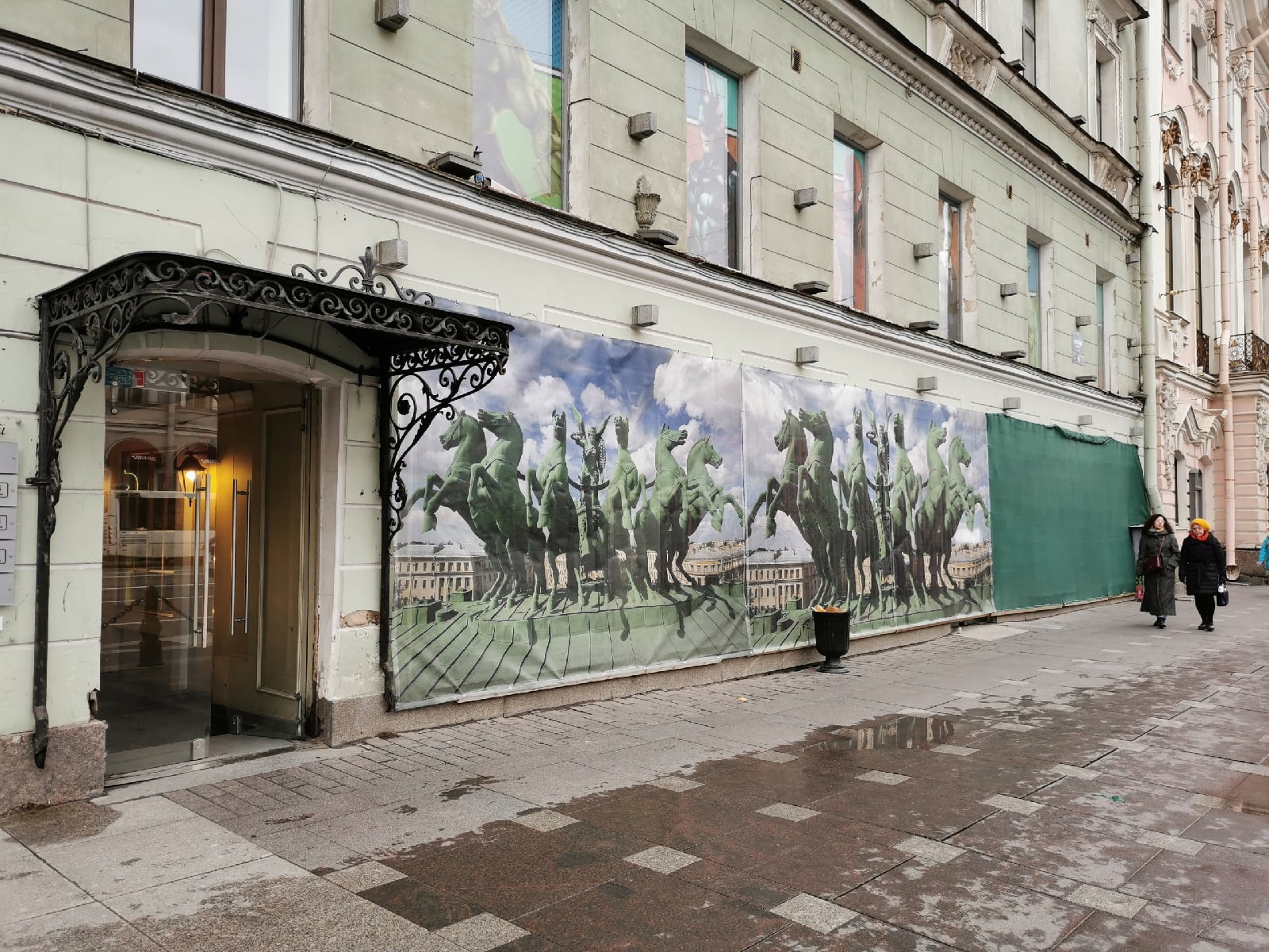 На Невском проспекте граффити завесили баннером