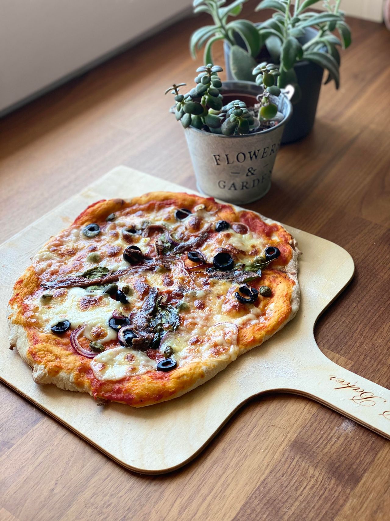 Но другое важное свойство печи в том, что в ней запекание происходит равномерно сверху и снизу, что и придает пицце из пиццерии ту самую желанную, слегка обугленную и хрустящую корочку. Обычный противень для этого не подойдет — даже если разогреть его в самой духовке перед выкладыванием на него сырой пиццы, он не обладает достаточной теплоемкостью, чтобы передать донышку пиццы достаточно жара, сформировать корочку и равномерно пропечь все ингредиенты снизу. Тут вам поможет пекарский камень — они свободно продаются в интернет-магазинах и подойдут не только для пиццы, так что это будет полезный в кухонном хозяйстве предмет, особенно если вы любите готовить.