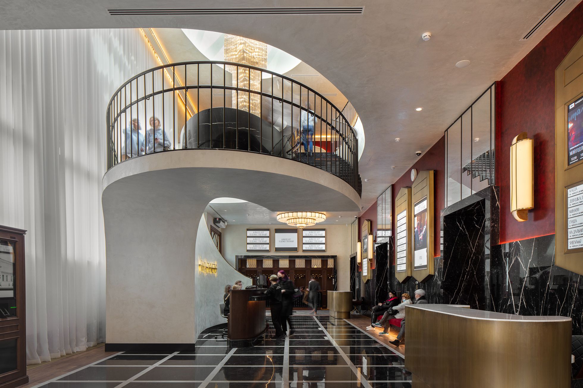 «Сегодня кино очень утилитарно, — рассказывает Парамонова. — Люди покупают попкорн, приходят в темный зал и не обращают внимания на то, что их окружает до сеанса. А здесь была задача создать [значимое] место, при том новые интерьеры должны были взаимодействовать с наследием Шехтеля».