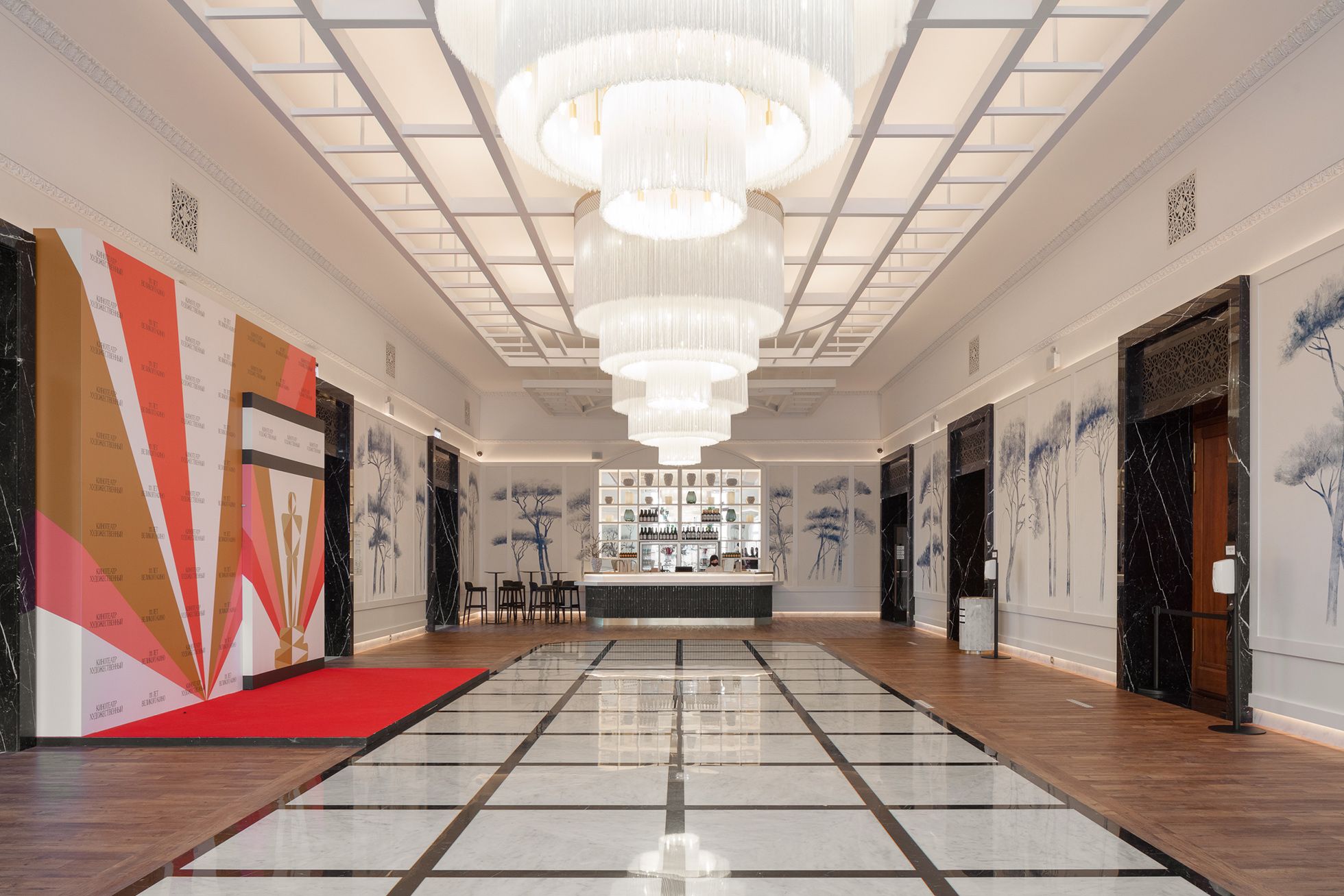 Дизайнеры Lázaro Rosa-Violán предложили использовать в качестве отправной точки мотивы кинофестивалей в Каннах, Сан-Себастьяне, Венеции, Берлине. Парамонова говорит, что прямых отсылок нет и «статуэтку «Оскара вы здесь не найдете» — речь идет именно об атмосфере, которую создают интерьерные решения. Отсюда и выбор материалов, и явные отсылки к эстетике ар-деко, которая в свою очередь ассоциируется с «золотым веком» Голливуда.