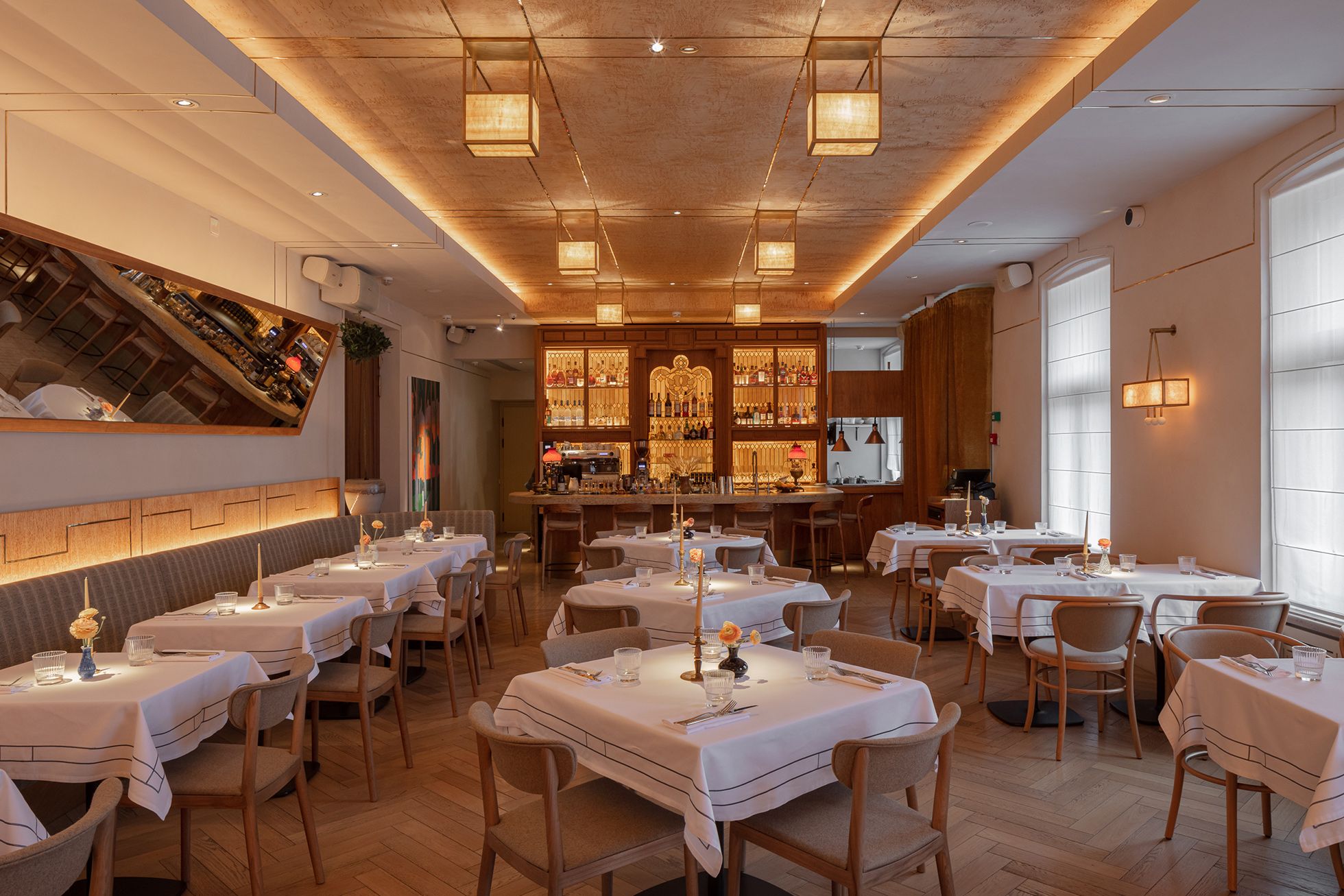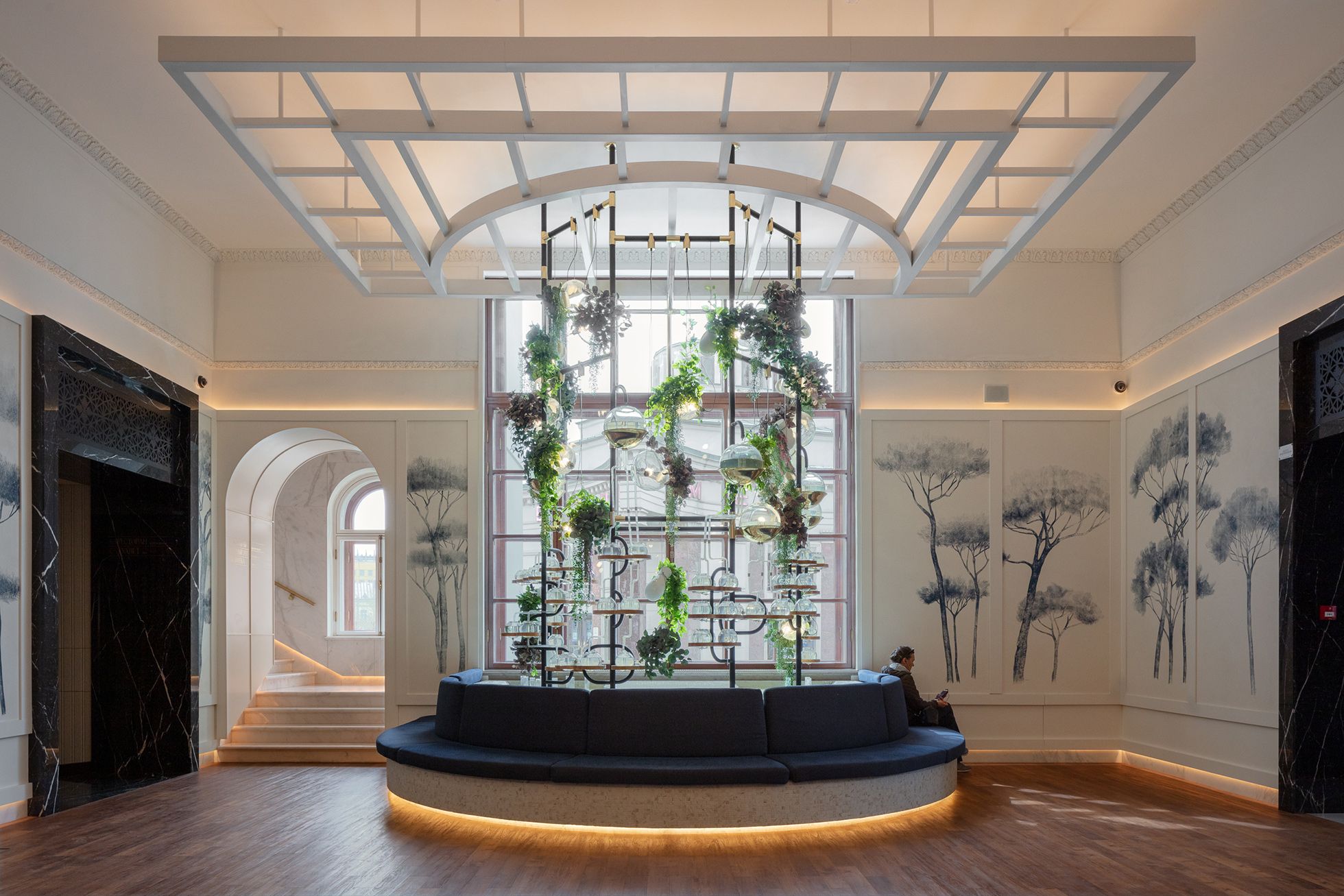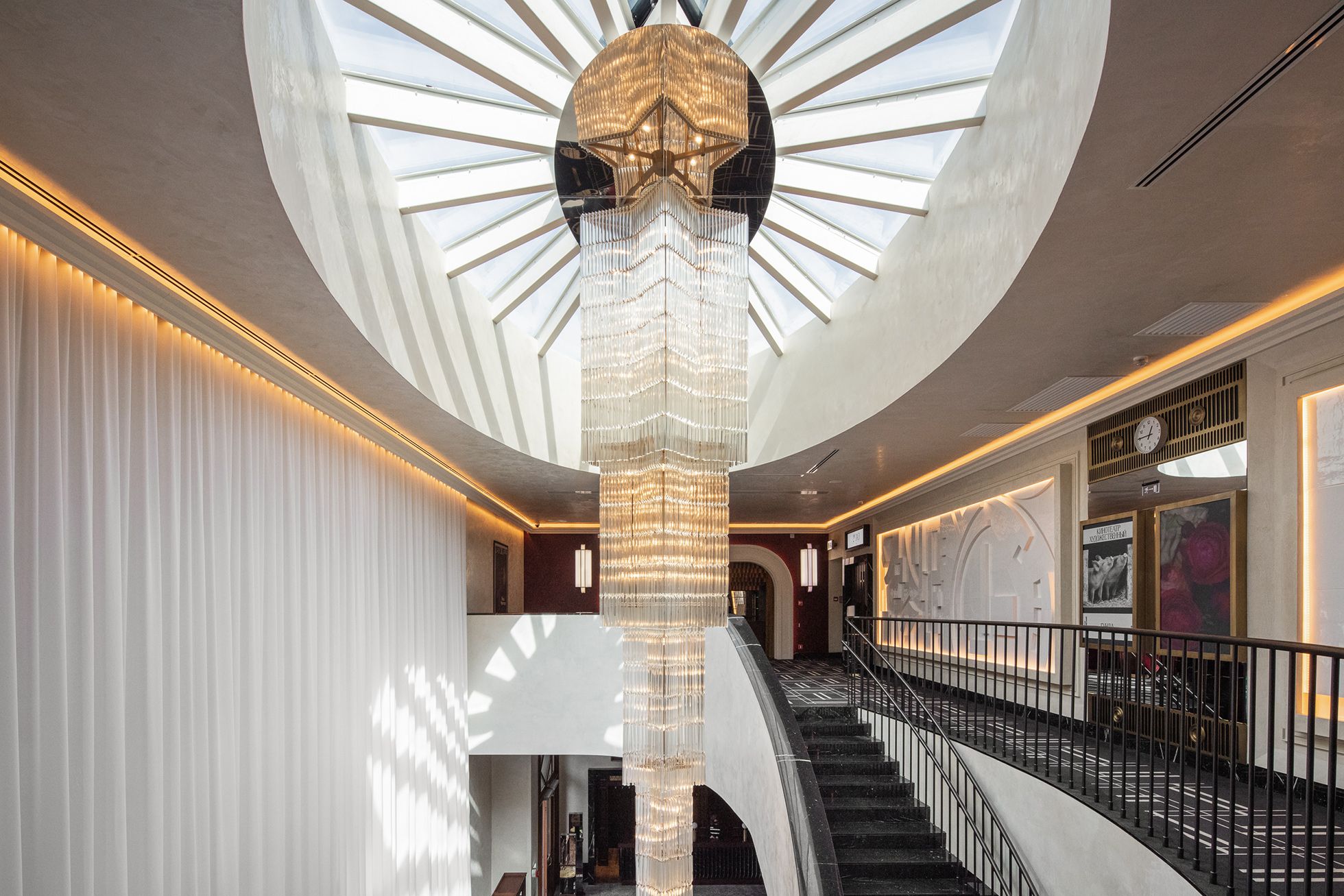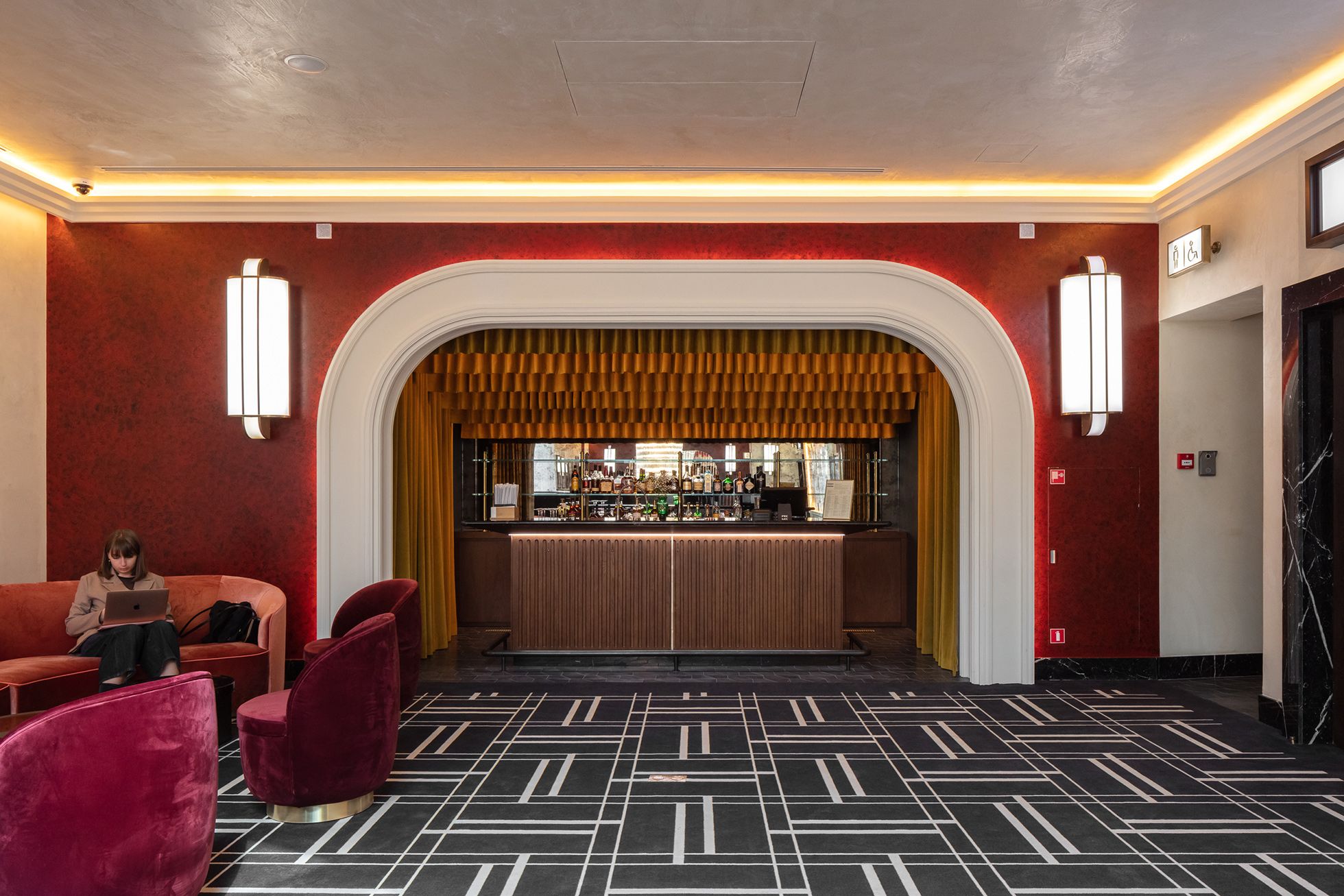 Интерьеры изменились куда радикальнее. Фактически, их создали с нуля, хотя вернули помещениям оригинальные планировки и включили в них то немногое, что уцелело от исторического декора. То, что получилось в результате, можно считать современной интерпретацией ар-деко, хотя и очень условной.