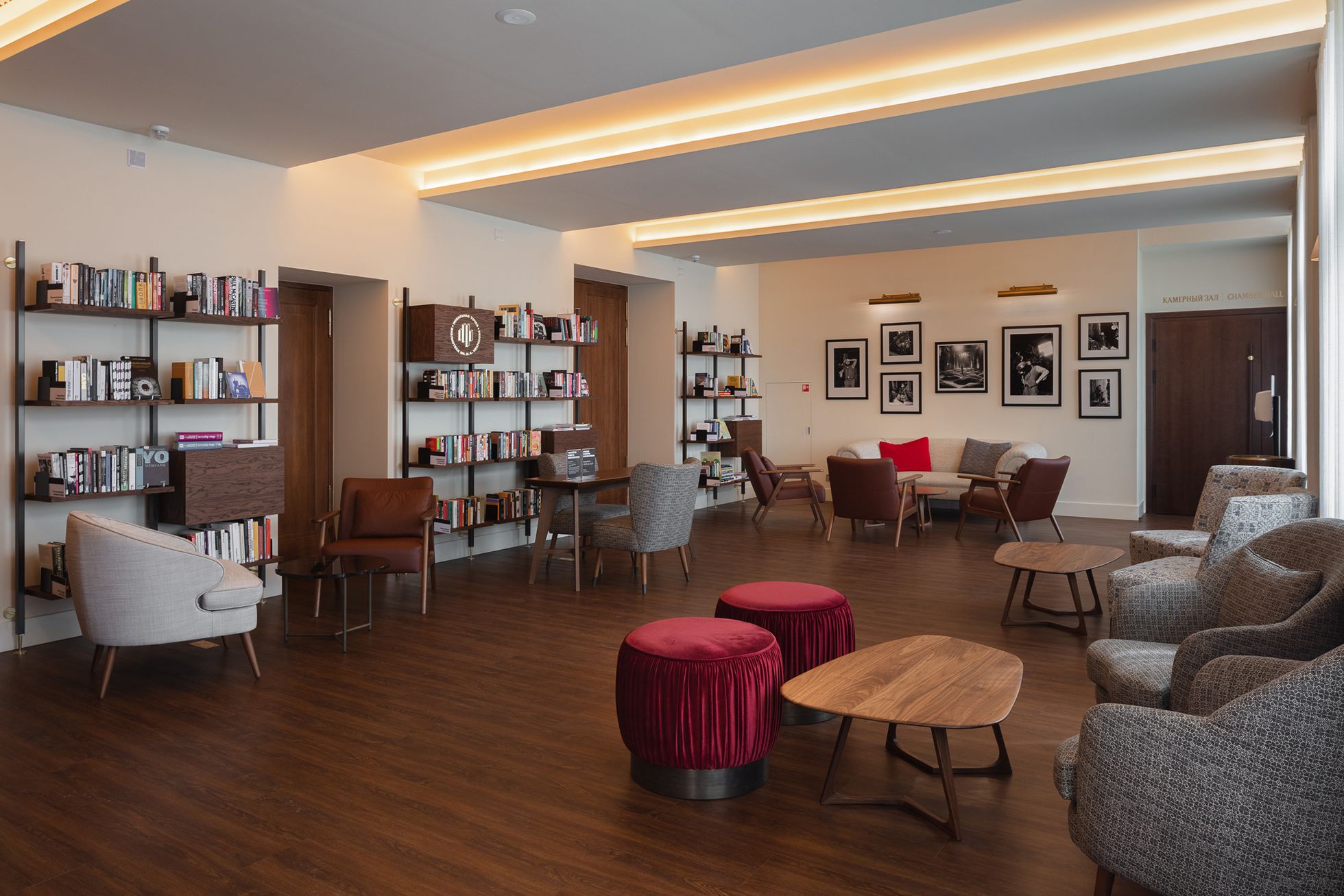 Парамонова в разговоре с «Медузой» дополняет: одной из главных проблем, выявленных при анализе территории, была выключенность здания из окружающего контекста. Авторам проекта хотелось, чтобы это место избавилось от имиджа «транзитной» зоны — для этого, помимо зрительных залов, здесь открыли библиотеку на втором этаже и несколько кафе и ресторанов.