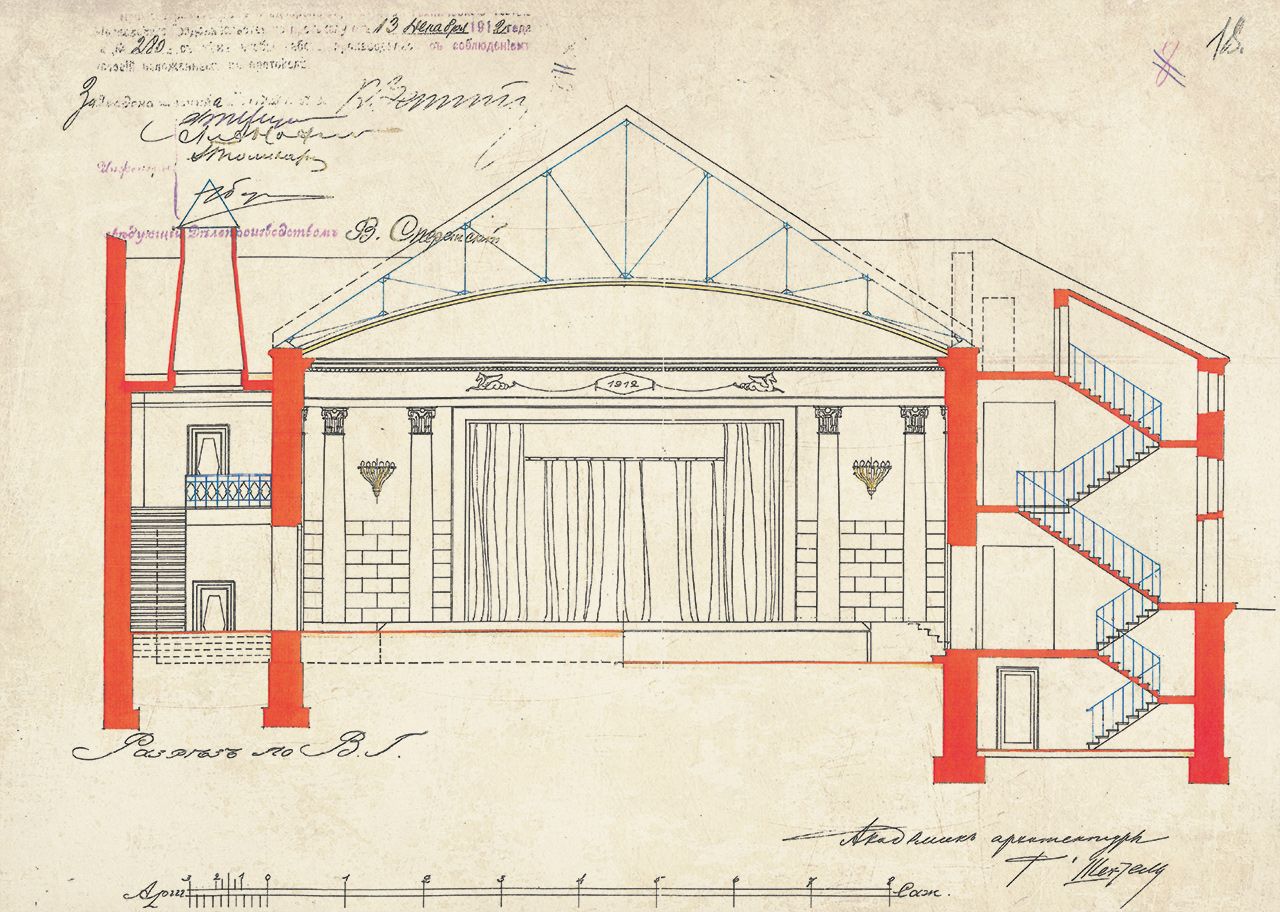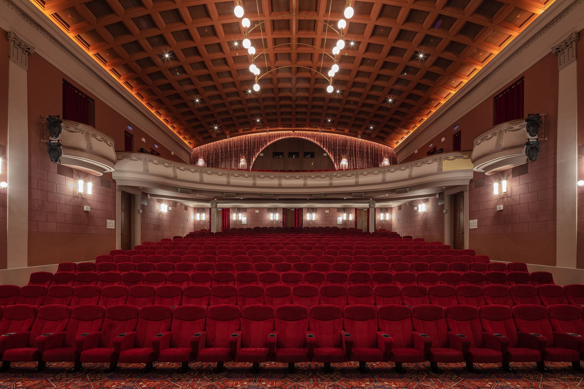 В главном зале для зрителей снова открыли балкон — в последние годы перед закрытием туда не пускали из-за угрозы обрушения. Ограждение балкона сохранилось шехтелевское, потолок восстановили по чертежам архитектора, однако пропорции изменились: новые кессоны стали глубже, чтобы вместить внутрь инженерные коммуникации, в том числе акустическое оборудование. Еще часть колонок спрятана за стенным декором в виде руста — для того, чтобы создать его, потребовалось искать специальную акустическую штукатурку.