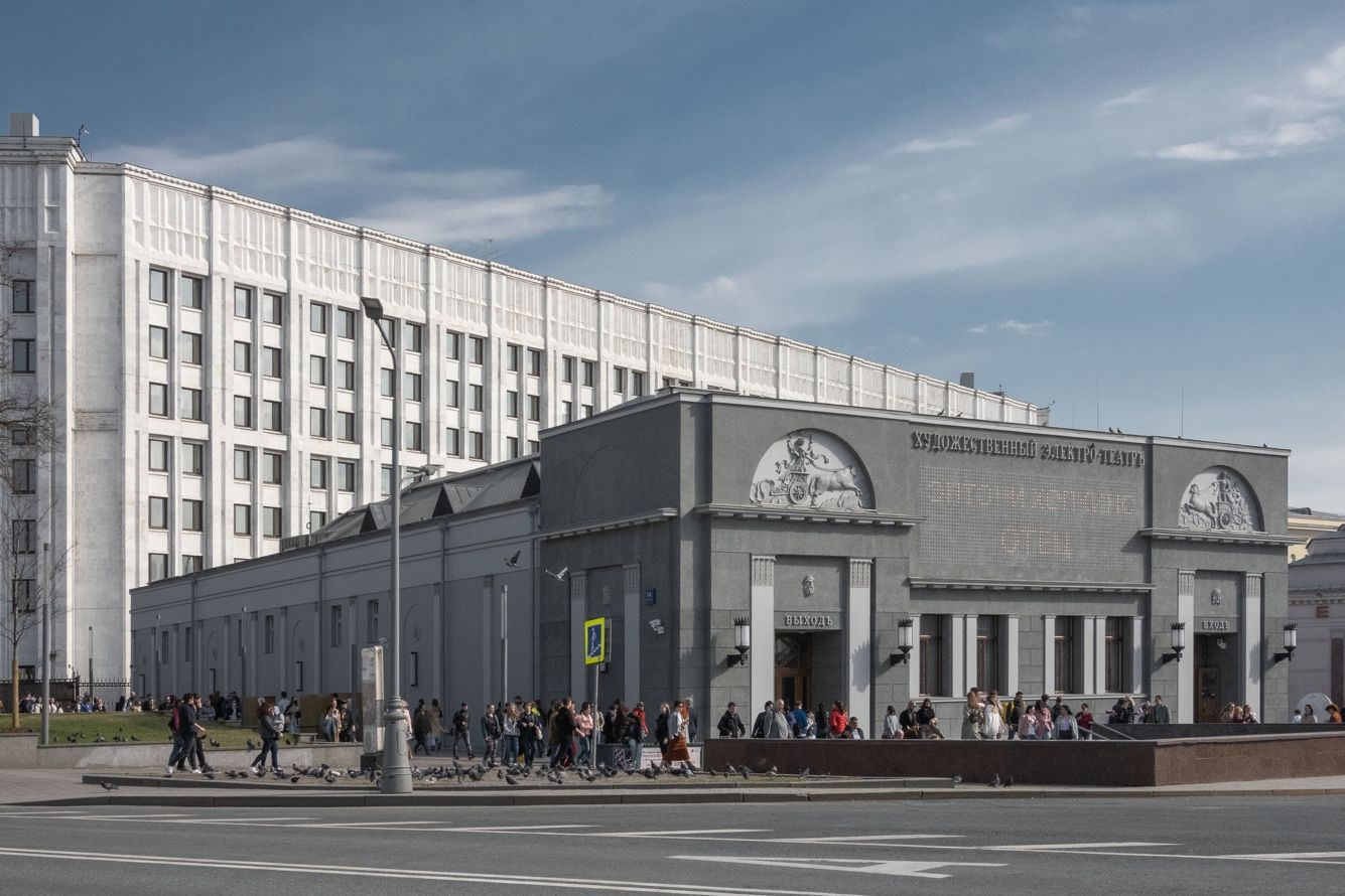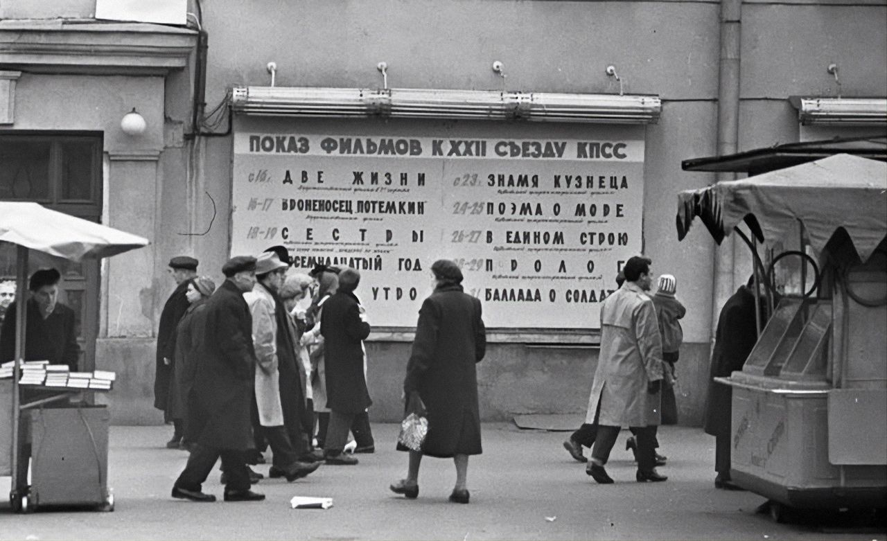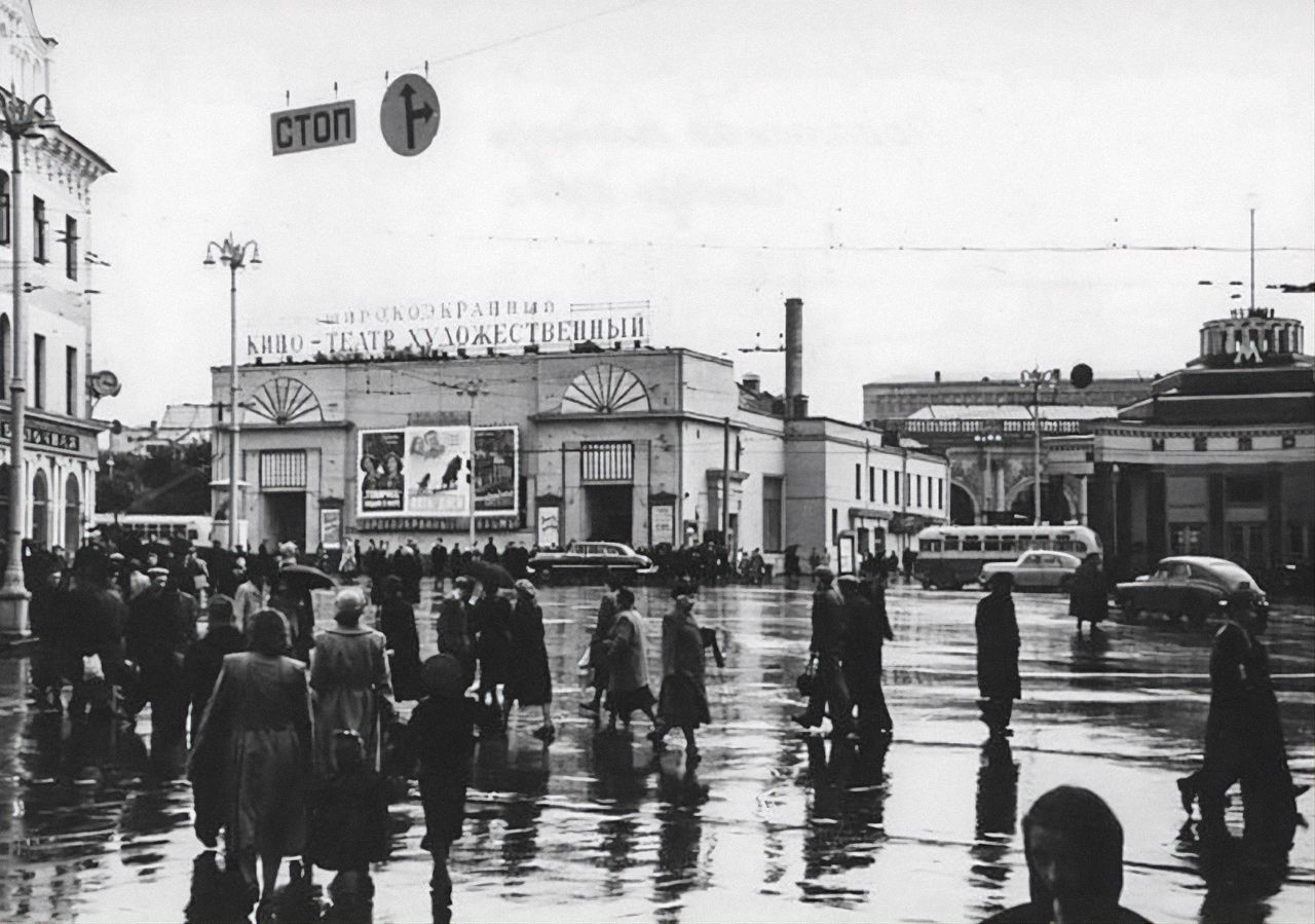 «Художественный» с первых десятилетий был знаковой киноплощадкой: после революции его сделали первым кинотеатром Госкино. В 1931 году здесь представили первый в СССР звуковой фильм «Путевка в жизнь», а в 1955-м он стал первым широкоэкранным кинотеатром Москвы. Его история тесно связана с картиной Сергея Эйзенштейна «Броненосец Потемкин» — именно в «Художественном» наряду с кинотеатром «Метрополь» в январе 1926 года фильм впервые представили в широком прокате. В честь этого на фасадах обоих зданий появились объемные афиши в виде кораблей с красным флагом. Уменьшенный вариант макета для «Художественного» теперь хранится в Музее кино.