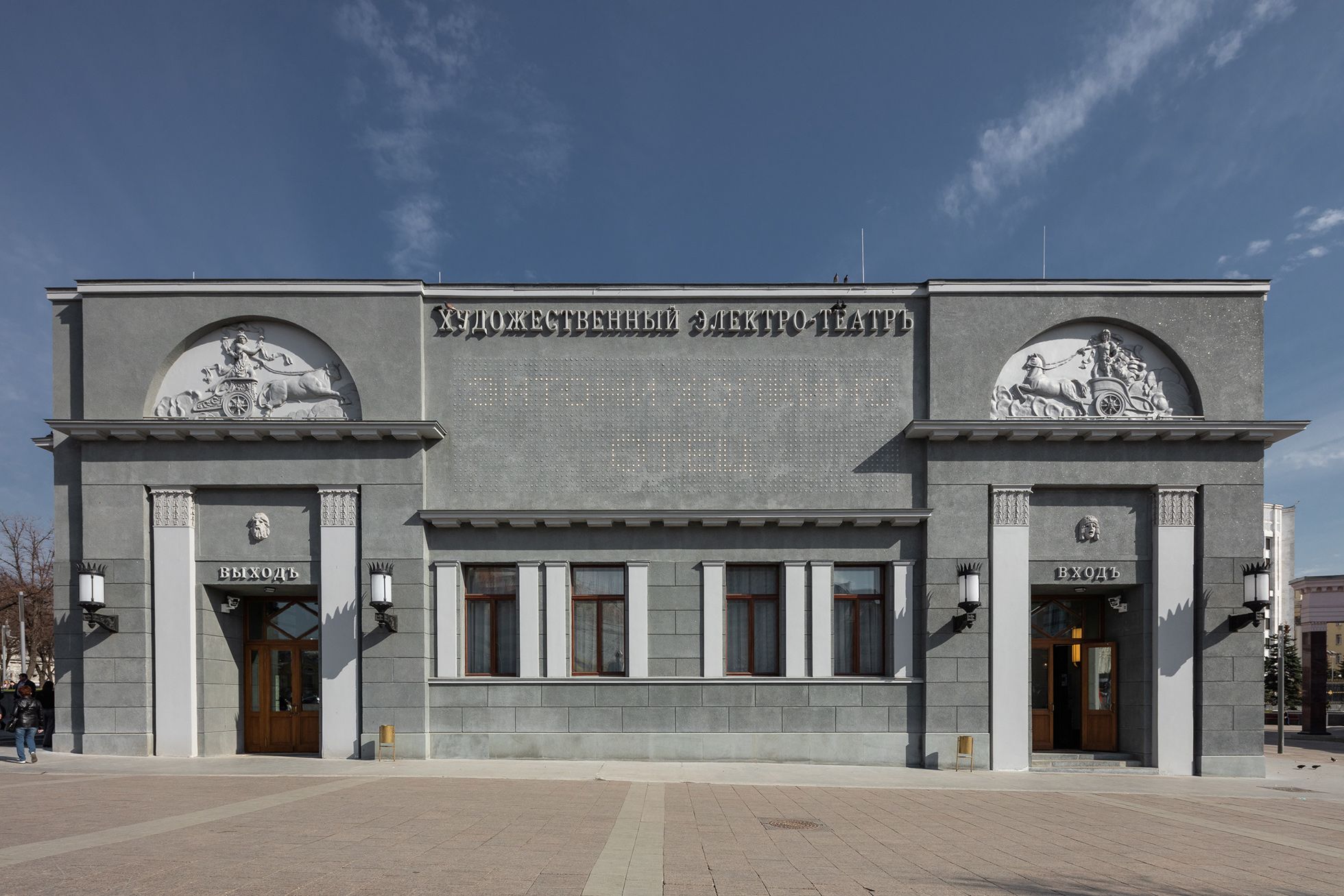 На главный фасад вернулись барельефы античных божеств Гелиоса и Селены, от которых избавились в 1950-е в ходе «борьбы с излишествами»; отреставрировали мужской и женский маскароны, а также надписи «Электро-театръ», «Входъ» и «Выходъ» (дореволюционная орфография сохранена) — все это воспроизвели по документам, предоставленным Центральным архивом научно-технической документации Москвы (ЦАНТД), Музеем архитектуры им. Щусева и другими источниками.