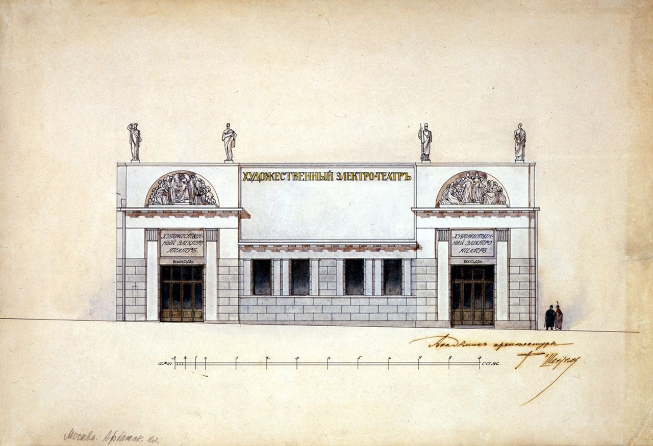 «Художественный» — один из старейших кинотеатров России и самый первый, для которого в Москве возвели отдельное здание. Дом по проекту архитектора Николая Благовещенского появился на Арбатской площади в 1909 году и за 112 лет ни разу не поменял основной функции, однако его неоднократно перестраивали. Первый раз — уже спустя три года после открытия, потому что кино набирало популярность, в связи с чем постройку решили увеличить. За реконструкцию отвечал Федор Шехтель — автор Ярославского вокзала, особняка Рябушинского и других дореволюционных памятников начала XX века.