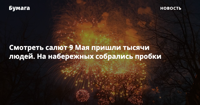 В Петербурге отгремел салют в честь празднования 9 Мая. На набережных собрались толпы людей, а на мостах автомобилисты останавливались в несколько рядов, чтобы занять выгодную позицию для наблюдения. «Бумага» показывает фото и видео.