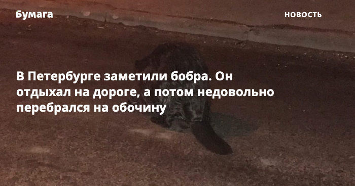 Животное сидело на дороге в два часа ночи. Проезжающие автомобилисты спугнули его светом фар и заставили отползти на обочину, чем, по мнению автора публикации, вызвали недовольство бобра.