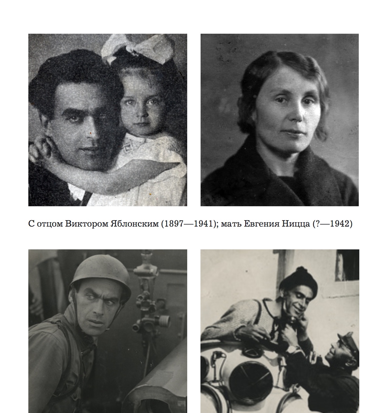 – Моя бабушка, мамина мама, Евгения Ница погибла в блокаду от голода в 1942 году, в свидетельстве о смерти было написано "воспаление легких", но по воспоминаниям тех, кто ее нашел, было понятно, что от голода. У ее мужа Виктора Яблонского была бронь как у актера "Ленфильма", выдающегося деятеля культуры, но он отказался эвакуироваться на Урал, ушел добровольцем на фронт и погиб в первые дни войны. Бабушка осталась без кормильца с двумя детьми, моей 4-летней мамой Марианной Яблонской, ставшей писателем, и ее 6-летней сестрой Таней. Бабушка погибла от голода, а девочек нашли в разоренной квартире, никто не знает, сколько они пробыли там одни с умершей матерью. По семейным воспоминаниям, какое-то время они были одни, но ни соседи, ни управдом об этом, видимо, не знали. Потом их нашли и забрали в детский дом, моя тетя Таня практически сразу же умерла от дистрофии, а мама выжила и стала писательницей, актрисой, режиссером. Она умерла очень рано, в 42 года, от инсульта, и я считаю, что тут сказались последствия блокады.