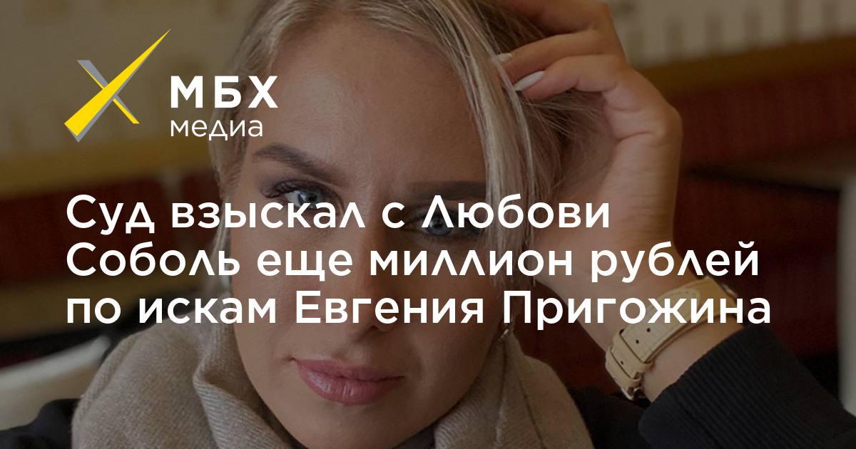 С Любови Соболь уже взыскали 500 тысяч рублей в качестве компенсации морального вреда по другому иску Пригожина. Речь идет о твите с фразой «Когда воруешь из бюджета, хочется урвать еще немного денег». Пригожин требовал взыскать компенсацию в 5 миллионов рублей.
