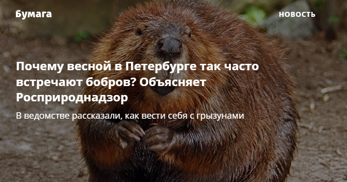 Почему весной в Петербурге так часто встречают бобров? Объясняет Росприроднадзор — и советует, как вести себя с грызунами