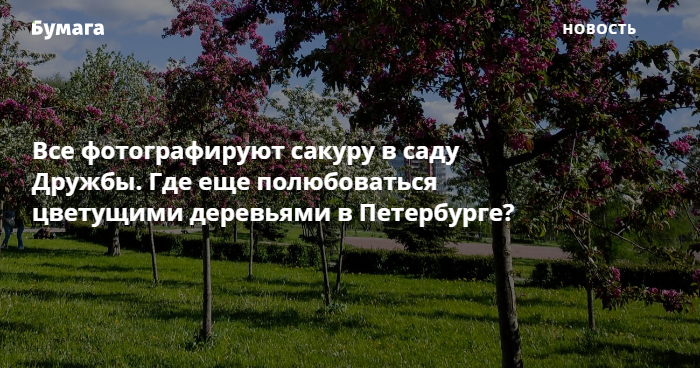 В саду Дружбы на Литейном проспекте расцвела сакура — и собрала вокруг толпы. «Бумага» показывает, где еще в Петербурге можно полюбоваться цветущими деревьями.